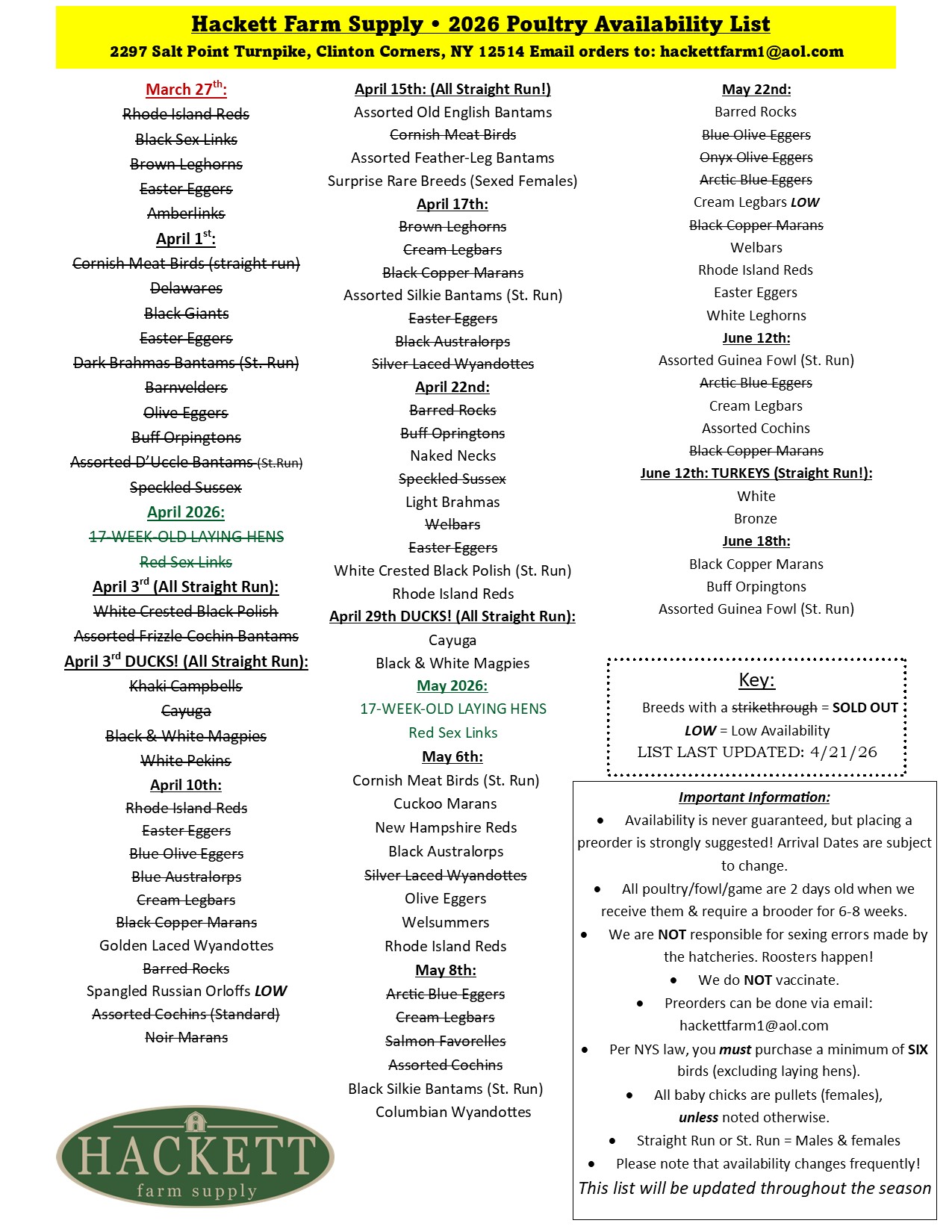 Poultry Availability List Please use the form below (or email), to request/research your order. InstagramThis field is for validation purposes and should be left unchanged.Name(Required) First Last Phone(Required)Email(Required) Enter Email Confirm Email SubjectQuestion or Comment